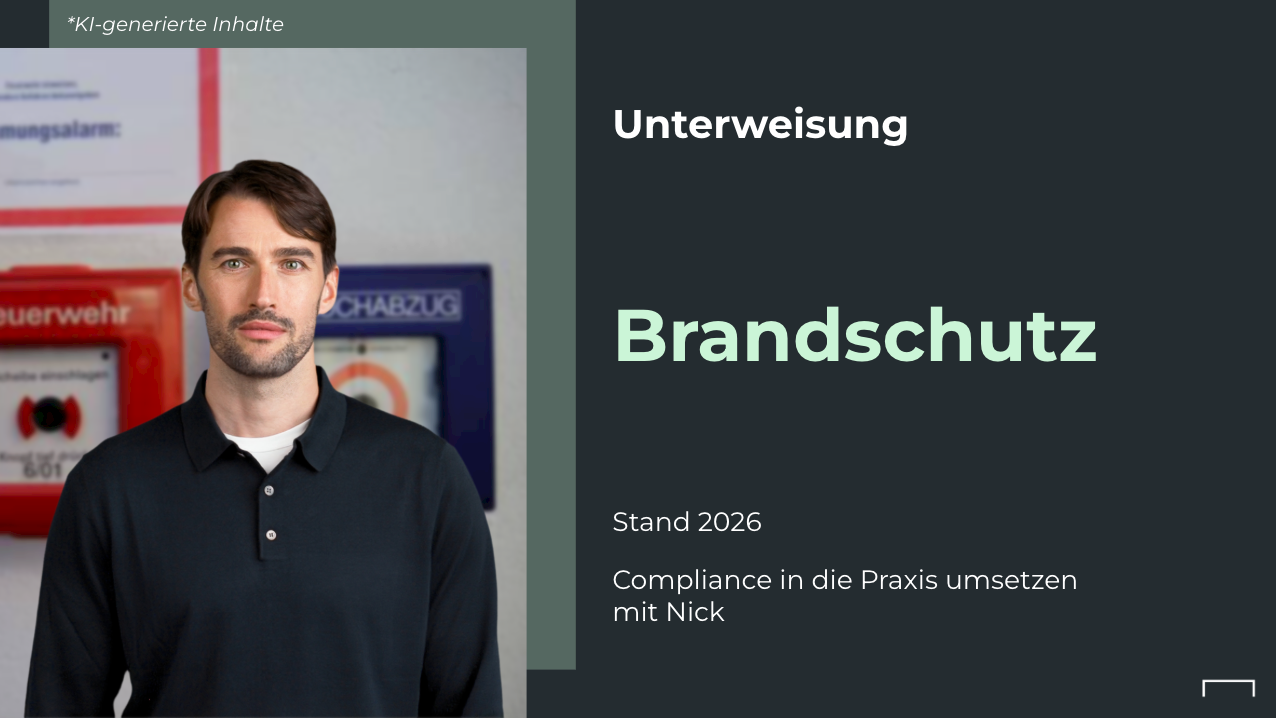 Ein wirksamer Brandschutz entsteht durch umsichtiges Verhalten, klare Abläufe und ein grundlegendes Verständnis für typische Brandgefahren. Diese Unterweisung zeigt kompakt und praxisnah, wie Brände verhindert, Warnsignale richtig eingeordnet und Notfallsituationen sicher gemeistert werden. Die Teilnehmenden lernen, Risiken früh zu erkennen, geeignete Maßnahmen einzuleiten und im Ernstfall verantwortungsvoll zu handeln, um Personen und Sachwerte zuverlässig zu schützen.