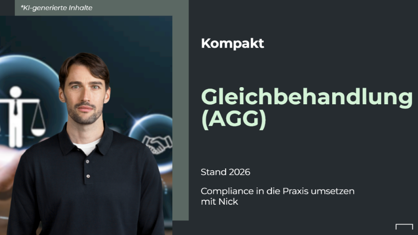 Ein respektvolles und diskriminierungsfreies Arbeitsumfeld entsteht durch Bewusstsein, klare Haltung und den achtsamen Umgang miteinander. Diese Unterweisung zeigt kompakt und praxisnah, wie Diskriminierung erkannt, Benachteiligungen vermieden und Gleichbehandlung im Alltag aktiv gefördert werden kann. Die Teilnehmenden lernen, gesetzliche Vorgaben des AGG zu verstehen und einen wertschätzenden Umgang zu gestalten, der Vielfalt und Fairness im Unternehmen stärkt.